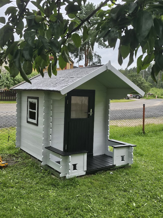 Mängumaja oli varasemalt rohelist värvi. Värv oli ajaga kulunud ja eks lapsed ka oma kunstiannet sellel arendanud. Uus värv muutis mängumaja kaasaegsemaks ja stiilsemaks.